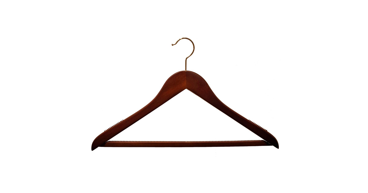 Nu har den äntligen kommit. Denna vackra svängda valnötsgalge med antislip. Elegant vridbar mässingkrok Antislipband...